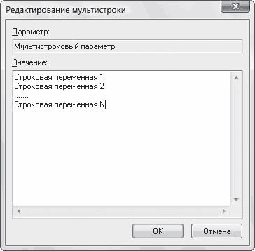 В данном окне в поле Параметр отображается наименование редактируемого параметра, а в поле Значение с клавиатуры вводится требуемое многостроковое значение данного параметра, присваиваемое ему нажатием кнопки OK.