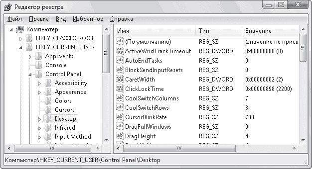 Рассмотрим наиболее часто используемые в реестре Windows Vista типы данных.