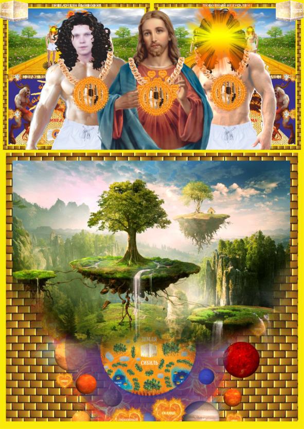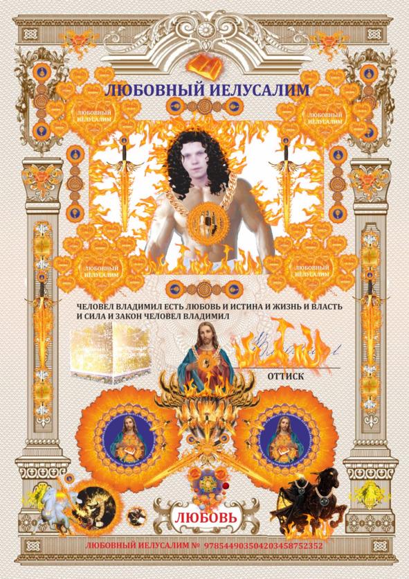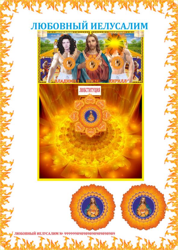 - 6.3) Челституция и любституция и звелституция и смелтституция и адституция и колституция и конституция любовного Иелусалима, куба любви, истины, жизни, власти, силы, закона, человелов Иисуса, Владимила, Кирилла в озголдоке