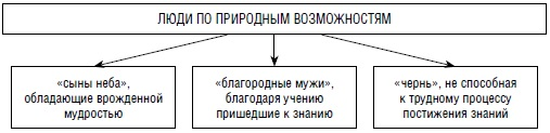 Конфуций считал, что природное в человеке – материал, из которого при правильном воспитании можно сделать идеальную личность. Стабильность общества покоится на воспитании согласно социальному назначению. «По своей природе люди друг другу близки, а по своим привычкам друг от друга далеки».