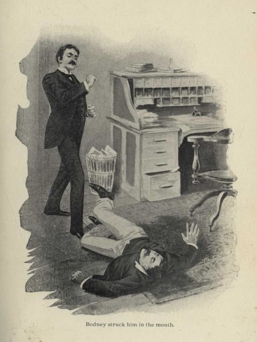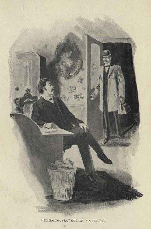 There were two doors leading into the office, one opening into a hall, the other into a passageway communicating directly with the street. Through the door opening into the passage Goyle entered. He carried a valise in his hand. Bodney looked up.