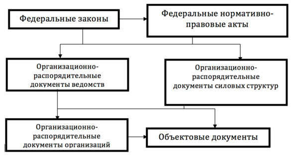 Нормативно-правовая документация по вопросам обеспечения ФЗ делится на несколько уровней, которые представлены на рис. 1.