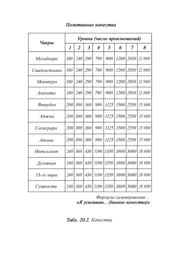 29. Качество энергии духовности — зависит от наличия созданных ранее мыслительных структур, осознания происходящих при самовнушении процессов, чистоты потоков и каналов, наличия достаточного объема духовных энергий и от качества вызываемых при самовнушении образов и ощущений.