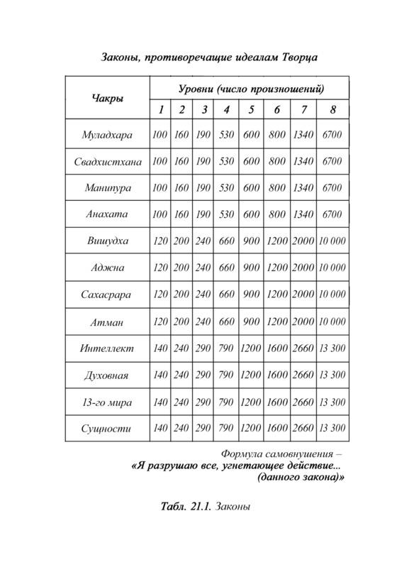 15.1. ОБЩИЕ ЗАКОНЫ САМОВНУШЕНИЯ ПО УРОВНЯМ РАЗВИТИЯ ЧЕЛОВЕКА (100 законов)
