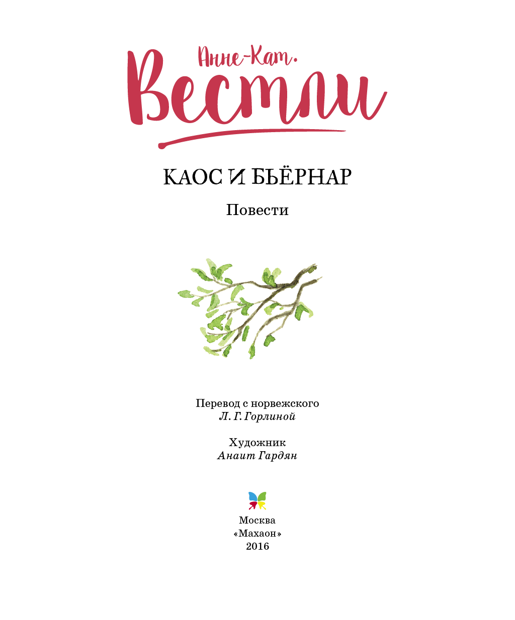 Каос и Бьёрнар : повести / Анне-Кат. Вестли ; пер. с норв. Л. Г. Горлиной ; ил. А.Р. Гардян. – М. : Махаон, Азбука-Аттикус, 2016. : ил.