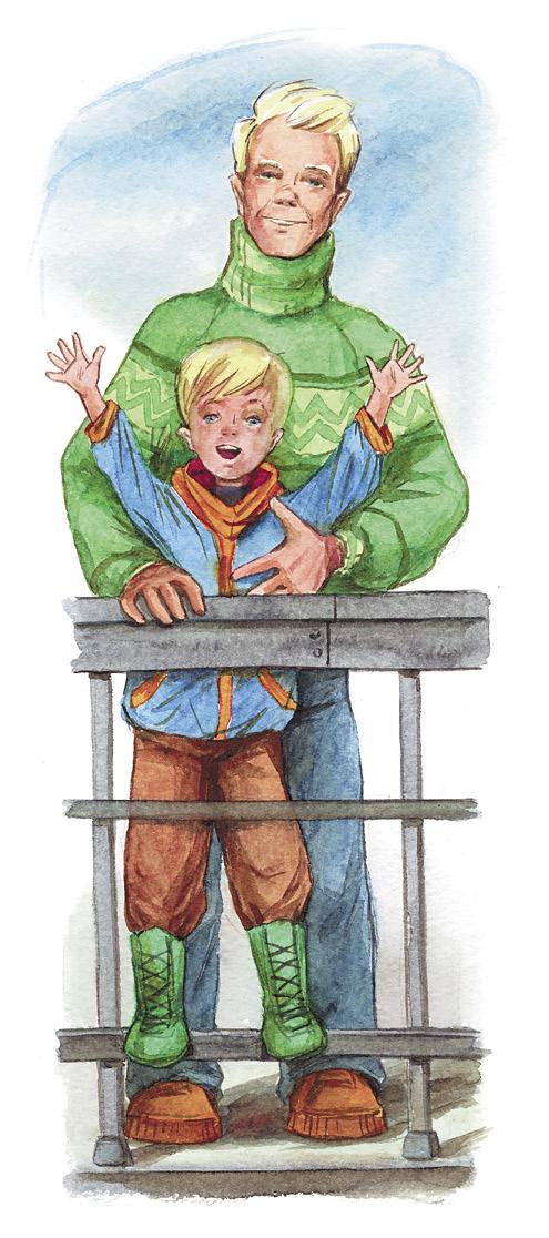 Наконец он отправился спать. Спал он в спальне вместе с папой и мамой, только они ложились гораздо позже, чем он. По обыкновению, ему разрешили нарисовать один рисунок, лёжа в кровати. Сегодня он нарисовал трёх лосей, которые стояли в лесу и слушали, как поют пассажиры маленького голубого автобуса.