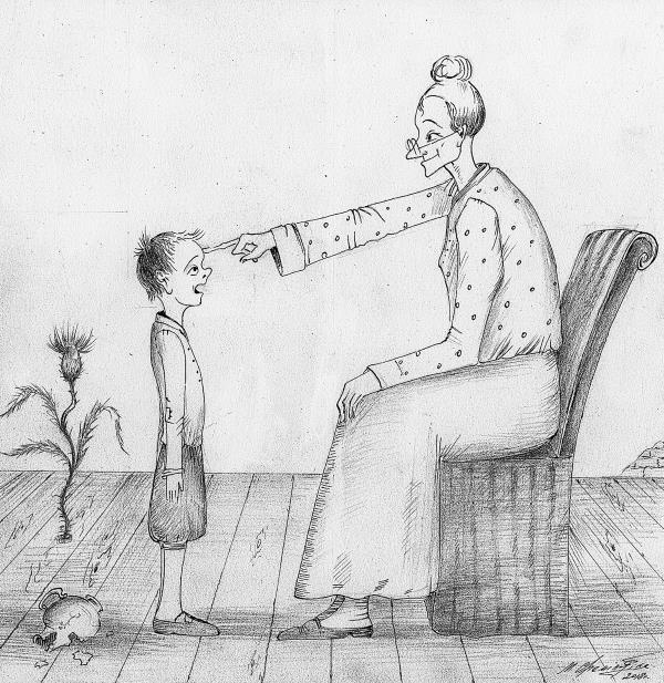 Напроказничавший должен был встать перед бабушкой, держа руки по швам, и получить порцию болезненных тычков костяным пальцем в лоб, отчего на лбу вспухала солидная шишка.