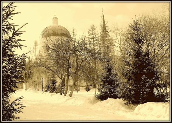 Лежит снег чистенький, ровненький. Только складочки, что ветра вывели, его гладь нарушают. И сугроб вышел на загляденье, будто вовсе не из снега он, а из дорогого итальянского белого мрамора сделан. Прислонился к сараю одной стороной, и над крышей вершина его возвышается. Никого. Тишина. Вот солнца круг сквозь облака-тучки, как нарисованный блёклой краской. Смотришь на него и глаза не прикрываешь — не слепит. Даже птицы куда-то подевались, а вроде и мороз не сильный, так, слегка щёки прижигает и за нос дёргает.