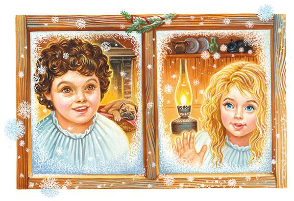 – Но ведь никого нет! Посмотри на ставни. Как они светятся! Это огни праздника у богатых детей напротив. Там сияет огнями ёлка! Давай откроем ставни!