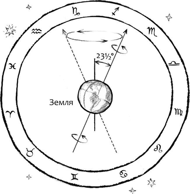 Это физическое явление, при котором ось вращения тела меняет свое направление в пространстве, называется прецессией. Поскольку Земля движется вокруг Солнца и вокруг собственной оси, с каждым оборотом ее ось смещается.