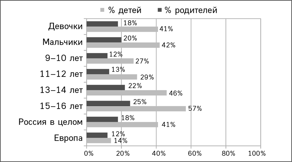 ДЕТИ РОССИИ ОНЛАЙН[3]: риски и безопасность. Результаты международного проекта EU Kids Online II в России / Г. Солдатова, Е. Зотова, М. Лебешева и др. – Москва, 2012. – С. 213.
