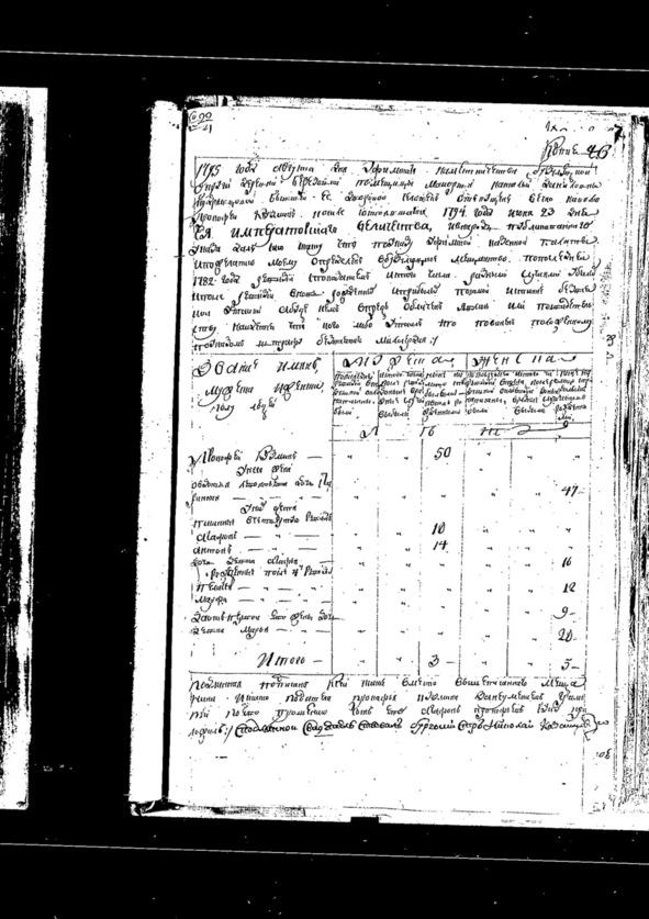 Страница из ревизской сказки по мещанам г. Бузулук. Из неё м узнаём, что где-то между 1782 и 1795 годами вдова Александра Кудрявцева, Наталья Даниловна отпускает на волю ряд крепостных, в числе которых был Кузьма Дубинин. Его сын Прокофий Кузьмич Дубинин уже живёт в г. Бузулук и значится в ревизских сказках мещанином Бузулукским