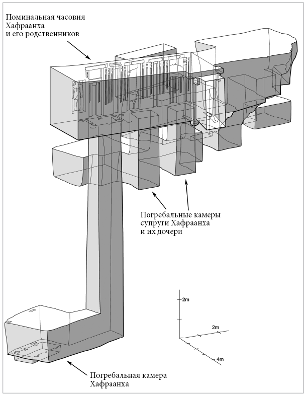 под ним трех шахт, ведущих соответственно в три погребальные камеры. Эти камеры и служили местом захоронения Хафраанха и членов его семьи.