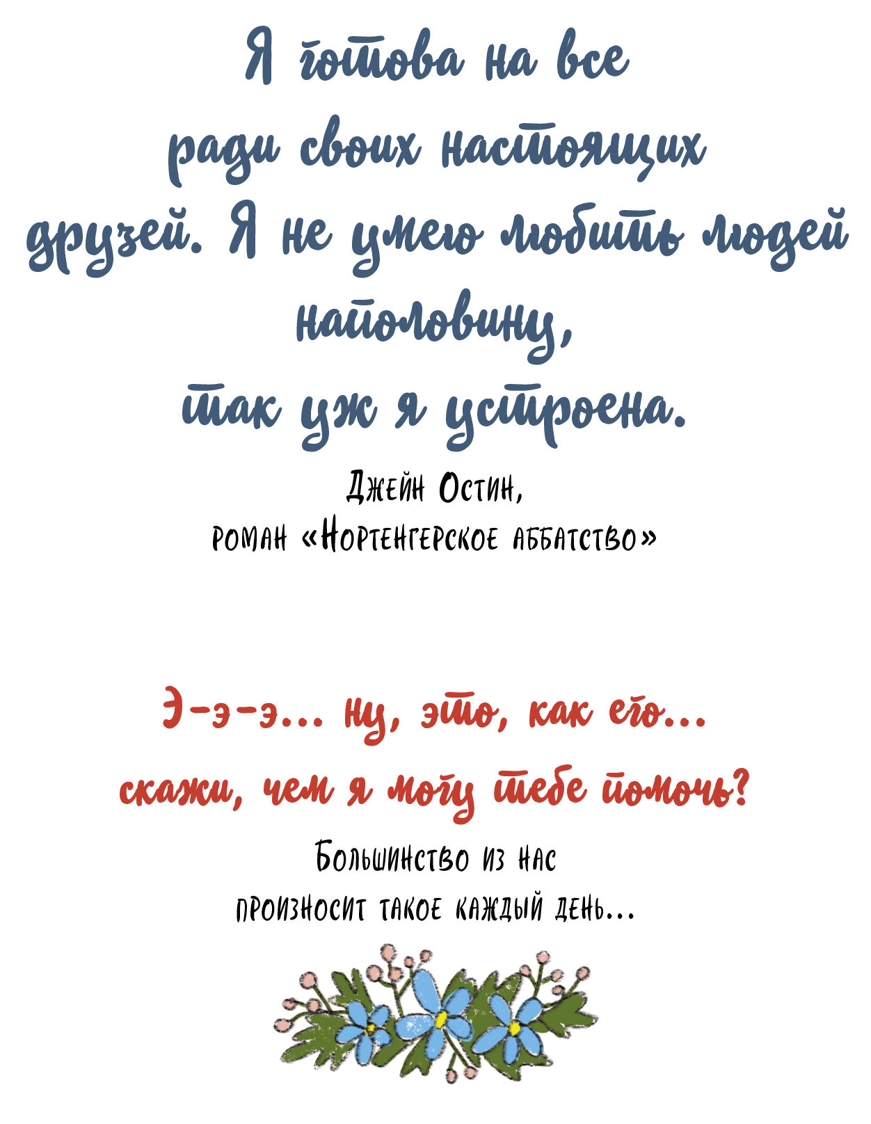 Если вы считаете, что неуклюжая попытка пожалеть друга в кризисной ситуации только ухудшит его положение, знайте: если вы не скажете совсем ничего, ему будет гораздо хуже. Не волнуйтесь: вы не одиноки. Эта книга научит вас поддерживать разных людей — друзей, родных, знакомых и даже незнакомых.