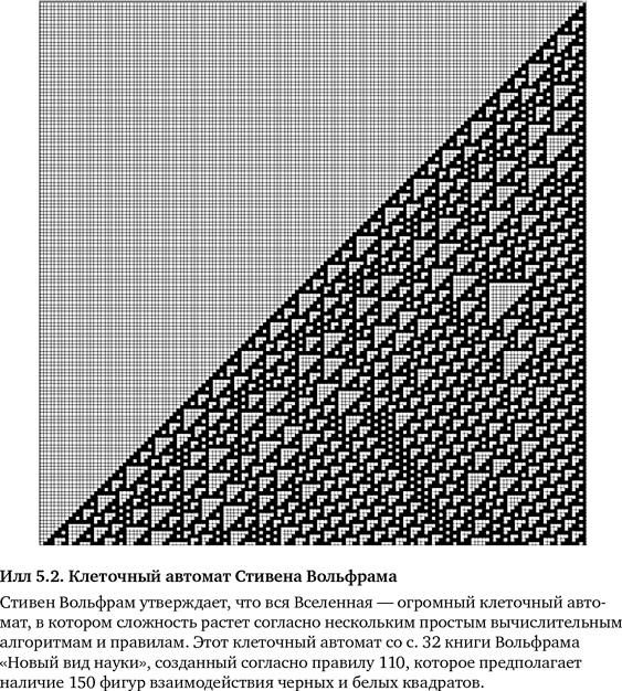 Первой идет цитата из книги Стивена Вольфрама, виртуоза из Калтеха и автора «Нового вида науки» (A New Kind of Science), в которой фундаментальная структура Вселенной и всего в ней сводится к вычислительным правилам и алгоритмам, воспроизводящим сложные структуры в форме клеточных автоматов. Вторая цитата принадлежит Джеймсу Картеру, ловцу жемчуга и автору «Иной теории физики» (The Other Theory of Physics), предлагающей цирклоновую теорию Вселенной, где вся материя строится из кольцевидных трубок, которые связывают все, от атомов до галактик.