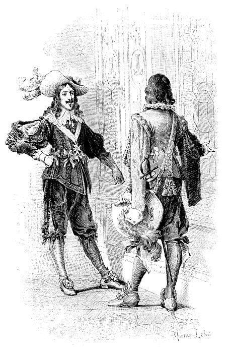 – Государь, – продолжал де Тревиль, – как я уже сказал вашему величеству, этот д’Артаньян почти ребёнок, а так как он не имеет чести состоять в мушкетёрах, то был в партикулярном платье. Гвардейцы господина кардинала, видя его юный возраст, а также то, что он не принадлежит к полку, просили его удалиться, прежде чем они нападут.