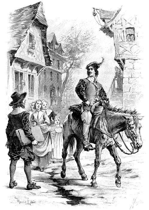 В первый понедельник апреля месяца 1625 года местечко Мён, в котором родился автор «Романа Розы»[2], было охвачено таким смятением, как будто гугеноты собрались превратить его во вторую Ла-Рошель[3]. Некоторые из жителей при виде женщин, бегущих по направлению к главной улице, и детей, орущих у порогов своих домов, торопливо надевали доспехи и, вооружившись для большей верности кто мушкетом, кто бердышом, спешили к трактиру «Вольного мельника», перед которым волновалась шумная толпа любопытных, возраставшая с каждой минутой.