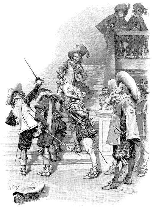 Атос взял на себя некоего Каюзака, любимца кардинала, Портос – Бикара, а Арамис сражался против двоих.