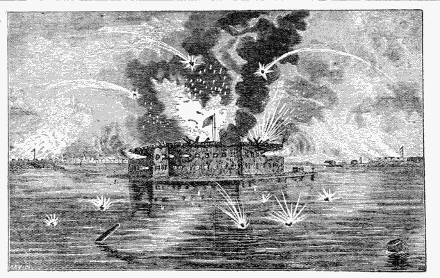 "The engines were instantly reversed and the port guns run in in order to bring her on an even keel, while the fire from her starboard battery was reopened on the forts. The engines were backed with all the steam that could be put upon them, and the backing was continued for thirty minutes, but without avail.