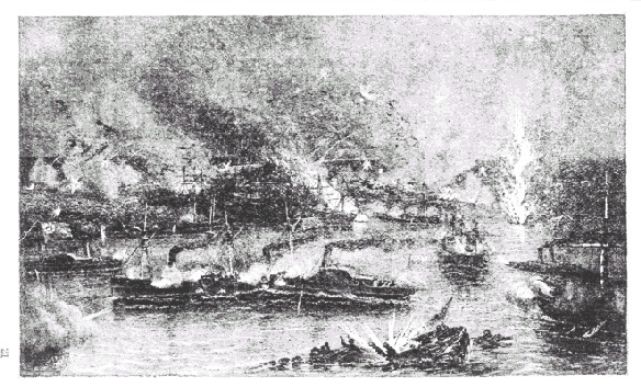 Without attempting to describe the battle in detail, we will give our attention to the Mississippi. Within an hour and a quarter of the time the leading vessel passed the forts, all had reached a safe point above, where they engaged in a furious fight with the Confederate flotilla, the smaller members of which were soon disabled or sunk.