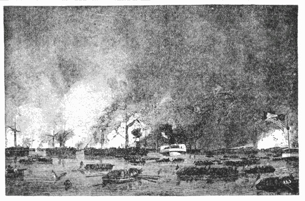 There was no getting out of the way of the fire-raft, which, being jammed against the flagship, sent the flames through the portholes and up the oiled masts. The perfect discipline of the crew enabled them to extinguish the fire before it could do much damage, and the Hartford succeeded in backing into deep water and kept pounding Fort St. Philip so long as she was in range.