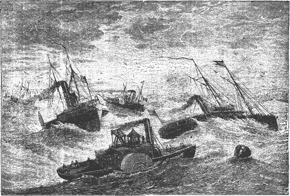 When the time came for the crew to save themselves as best they could, all sprang overboard and struck out for shore. A little way from the blazing steamer a poor sailor was struggling hard to save himself, but one arm was palsied from a wound, and he must have drowned but for Dewey, who swam powerfully to him, helped him to a floating piece of wreckage and towed him safely to land.