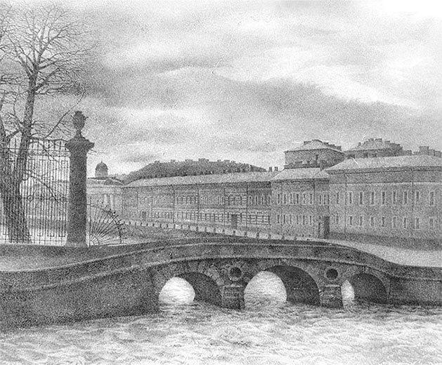 Автор проекта – Николай Бенуа. По его же проекту через шесть лет напротив здания Военного министерства была построена деревянная оранжерея с жильем для садовника.