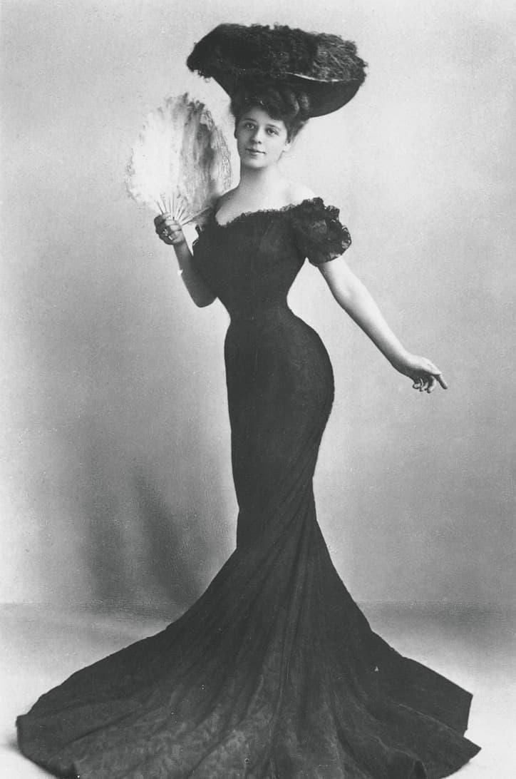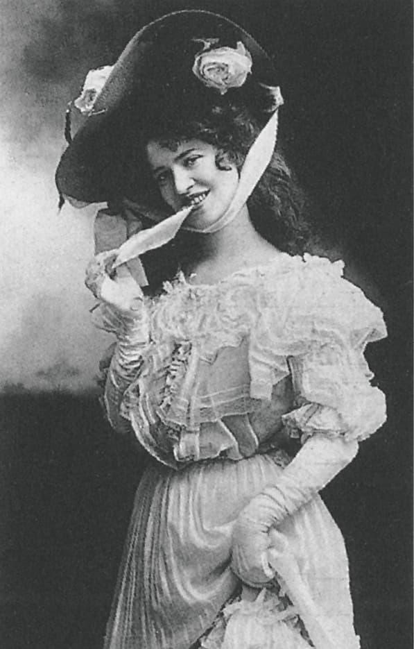 14 В начале 1900-х годов в большом количестве выпускались открытки с изображением актрис и светских «красавиц», помогавшие популяризировать актуальные фасоны. Для этой фотооткрытки 1906 года в пышном летнем платье позирует актриса мисс Элис Рассон.
