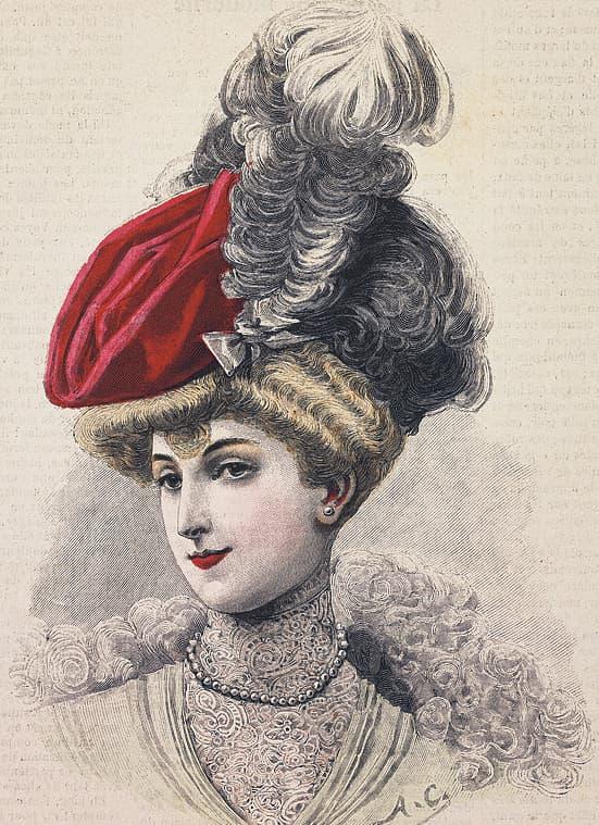 25 Рекламное объявление о продаже шляпы, украшенной страусиными перьями от Модного дома Виро, из журнала La Mode Illustrée, № 38, от 26 ноября 1905 года. Берта и Поль Виро были одними из ведущих и самых дорогих шляпников Парижа. Шляпы, украшенные крупными завитыми перьями и/или искусственными цветами, считались верхом шика. Страусиные перья самого высокого качества импортировали из Судана.