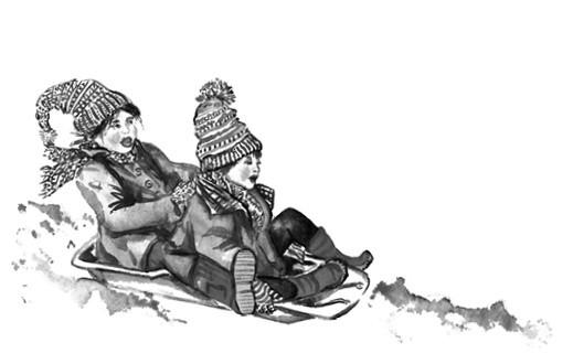 Никита сбежал с крыльца по хрустящим ступеням. Внизу стояла новенькая сосновая скамейка с мочальной витой веревкой. Никита осмот-рел – сделано прочно, попробовал – скользит хорошо, взвалил скамейку на плечо, захватил лопатку, думая, что понадобится, и побежал по дороге вдоль сада к плотине. Там стояли огромные, чуть не до неба, широкие ветлы, покрытых инеем, каждая веточка была точно из снега.