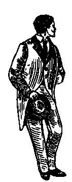 Сюртук – это верхняя мужская одежда, удлиненного кроя, как правило, длиною до колен. Может быть с одним или двумя рядами пуговиц. Был популярным предметом одежды с конца XVIII в. и на протяжении всего XIX. Чаще всего носился с жилетом и брюками с высокой посадкой на талии.
