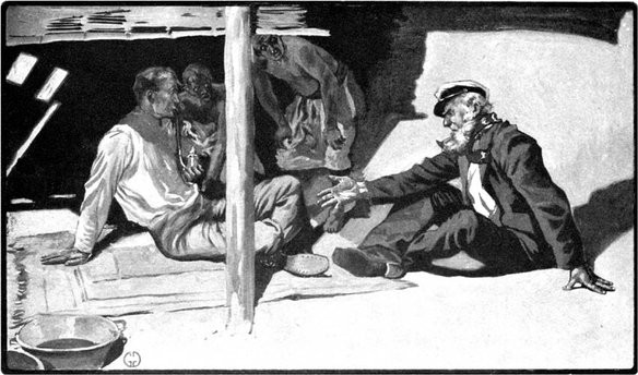 That's where it has gone, every dollar of it. To the sharks and bloodsuckers of seaport towns; to the tawdry sisterhood that spun their nets for Jack ashore; to those women that wheedled the seaman's last cent, and laughed to see him starving in the streets. It was for these he worked, then! It was for these he was even this minute painting the bloody bark; for rumsellers and harlots! He repeated the words to himself as he looked at his torn nails and blackened hands. For these—by God, for these! He felt within himself the welling of a great resolution, of a great revolt. He would reform. He would save his money. He would live straight. When they were paid off at Portland there should be two hundred dollars coming to him—two hundred dollars, more or less. He would put it in the bank, and get a shakedown in one of them model lodging houses. He would turn in at night with "Jesus, lover of my soul" in worsted work above his blessed head, and in the morning he would plank down his fifteen cents and begin the day with gospel tea. He would be a man! Yes, sirree, a man! Not a hog!