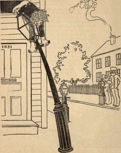 Well, he stood up straight for a week 'n* a half An' the folks, Gee! did n't they yell 'n' laff: The boys clum up his laigs quite bold— The gum was so soft they got good hold; The cars run under him day an' night, An' the people come miles to see the sight I Well, after he 'd stayed as stiff's a post, With his head on top o' the roofts almost, The sun come outer the fog one day An' — well, I guess you can see the way That gret big feller begun to melt; — Imagine how Willie and Wallie felt! For first he cocked his head out some, An' when the heat got inter the gum He slowly waved his arms ahead An' slanted forred, just like he was dead I
