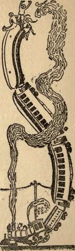 Then, what did I tell yer—that blame old head Their mother had made a-seprit, instead,— It fell right off an' squashed a horse ! ('T was so soft, it did n't kill him, o* course.) When his hands got so they touched the ground A hundred policemen they come around; They stuck a cable-car to his feet, An' one to his head, a goin' up street, An' then they pulled him opposite ways, An' they pulled him for days 'n' days 'n' days, An' they drored him out so slim an' small That he reached a mile 'n' a half, in all.
