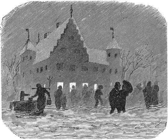 Я пытался развлечься в своем грустном одиночестве, разглядывая людей, сновавших в эту вьюгу по улице с багровыми носами и прищуренными глазами. Мало-помалу меня начала забавлять эта суета и оживление, царившие в расположенной напротив аптеке.