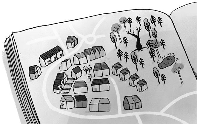 Я перевожу взгляд на рисунок, на Коган-лес. Он совсем близко — сразу за квадратными домами, прямоугольными садами и прямыми улицами. Как же хочется туда, на волю…