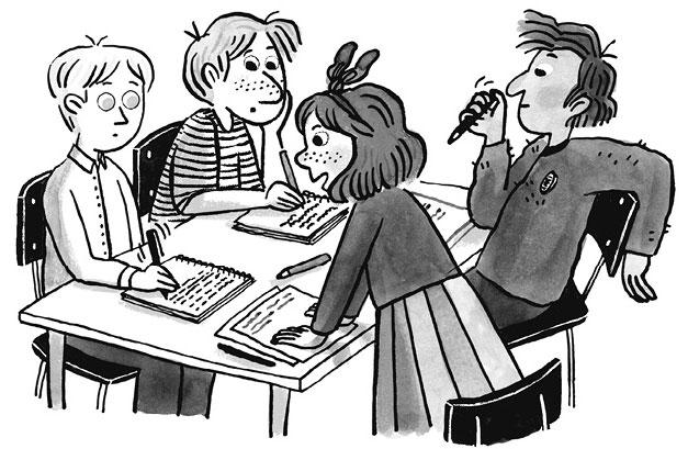 — Итак, — говорит мистер Гуру. — Начнём день с зарядки для мозгов. Заставим их крутиться, скакать и бегать наперегонки! Пусть работают!