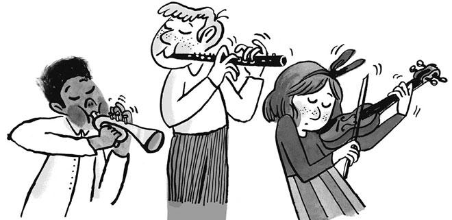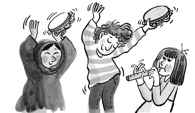 Она снова смотрит на дверь. Дверь закрыта. Миссис Фулихан мелко-мелко моргает, хмурится, но тут же надевает улыбку и подаёт знак мистеру Маккенне. Тот со всей мочи ударяет по клавишам. И оркестрик миссис Имани принимается перепиливать скрипки, колотить в барабаны и трясти бубнами.