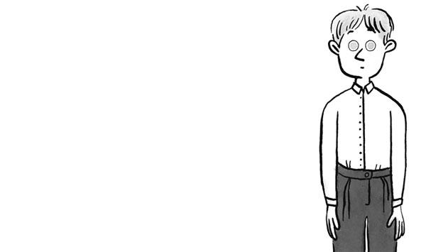 Мы не сводим с него глаз. Он очень бледный. И очень аккуратный. Ростом пониже меня. Тёмно-синие брюки, голубая рубашка, чёрные начищенные туфли. Волосы светлые, прилизанные.