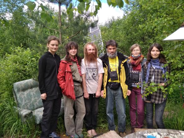 На первый участок пути нас вышло шестеро. До Ярославля мы планировали добираться автостопом тремя двойками. Первую двойку составляли я и моя супруга Катерина Боярова из Пензы. Катерина выбралась с нами всего на два дня, после она возвращалась в Москву — там она работала этим летом в художественном магазине, и не могла выделить месяц на северную поездку. Вторую двойку составлял Тимур Ташпулатов, живущий обычно в Москве (а иногда и во Владивостоке), и Аделина Копыльцова из Иркутска, 19-летняя юная художница, приехавшая к нам, в Западную половину России, на лето. Тимур провожал нас только в первый день, потом вернулся в Москву, там несколько дней поработал и догнал нас уже в Мурманске. Третья двойка включала в себя двух женщин — Киру из Железногорска и Машу Макарову из Москвы.