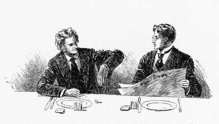 "Let's write a book," suggested the Idiot, as he took his place at the board and unfolded his napkin.