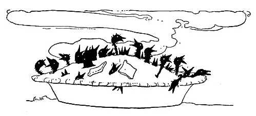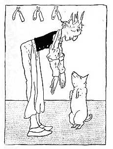 She took a clean dish To get him some tripe; When she came back He was smoking his pipe.