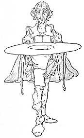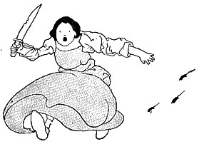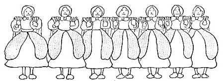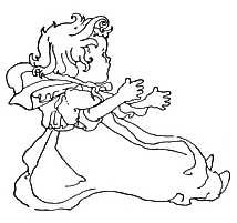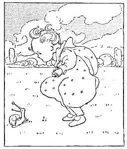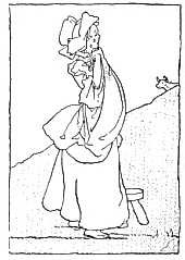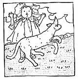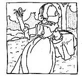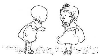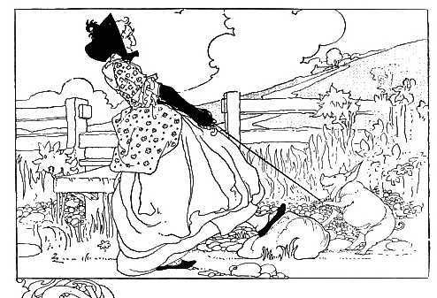 The dame made a curtsy, The dog made a bow; The dame said, "Your servant," The dog said, "Bow-wow!"