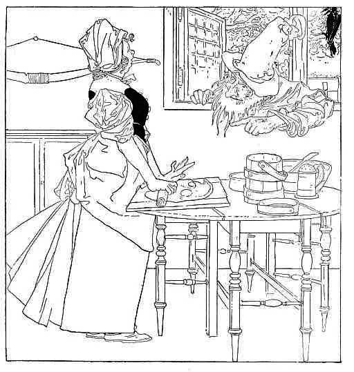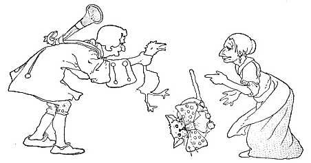 She went to the fruiterer's To buy him some fruit; When she came back He was playing the flute. She went to the tailor's To buy him a coat; When she came back He was riding a goat.