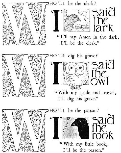 The earliest known collection of Nursery Rhymes was published about 1760 by John Newbery, the first publisher who devoted his attention to very young readers. In his book, which included songs from the plays of Shakespeare, some of the Rhymes appeared with titles which sound strange to our ears; thus "Ding, Dong, Bell" was called "Plato's Song", while "There were Two Birds sat on a Stone" was "Aristotle's Song". To each Rhyme was appended a moral maxim, as for example, to "Is John Smith within?" is added "Knowledge is a treasure, but practice is the key to it". Most of the Rhymes in this little Newbery collection, amongst them "There was a little Man and he wooed a little Maid" and "The Wise Men of Gotham", are repeated in the present volume so far as may be in accordance with that early text. Others have been compared with early versions in chap-books issued late in the eighteenth century or early in the nineteenth.