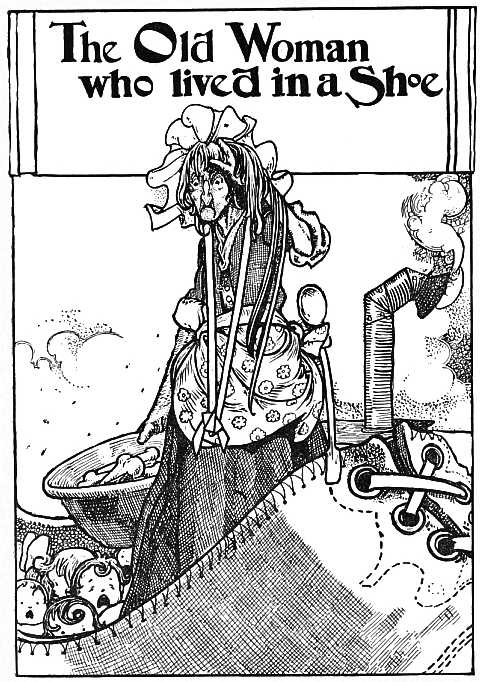 She went to the cobbler's To buy him some shoes; When she came back He was reading the news.
