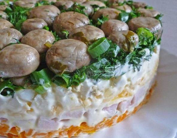 Смешиваем сметану с горчицей и лимонным соком, заправляем салат полученной смесью. При желании можно добавить соль.