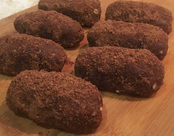 Сыр соединяем с яйцами, солью, перцем и панировочными сухарями. Добавляем эту смесь к ножкам.