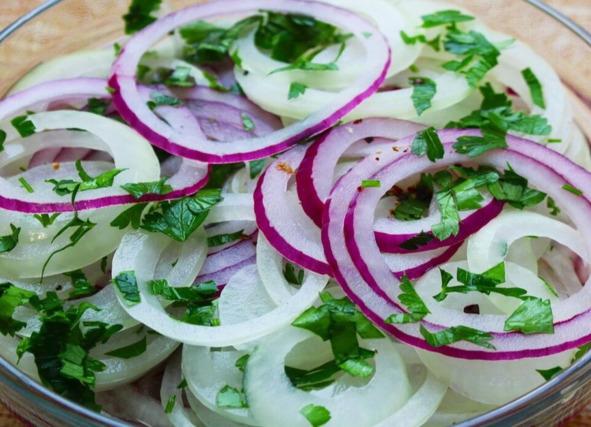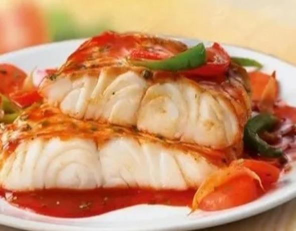 На 4 больших кусочка филе трески — 2 луковицы, нарезанные полукольцами;