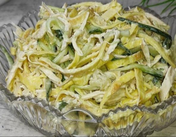 После этого сворачиваем каждый блинчик в трубочку и нарезаем тонкими кольцами.